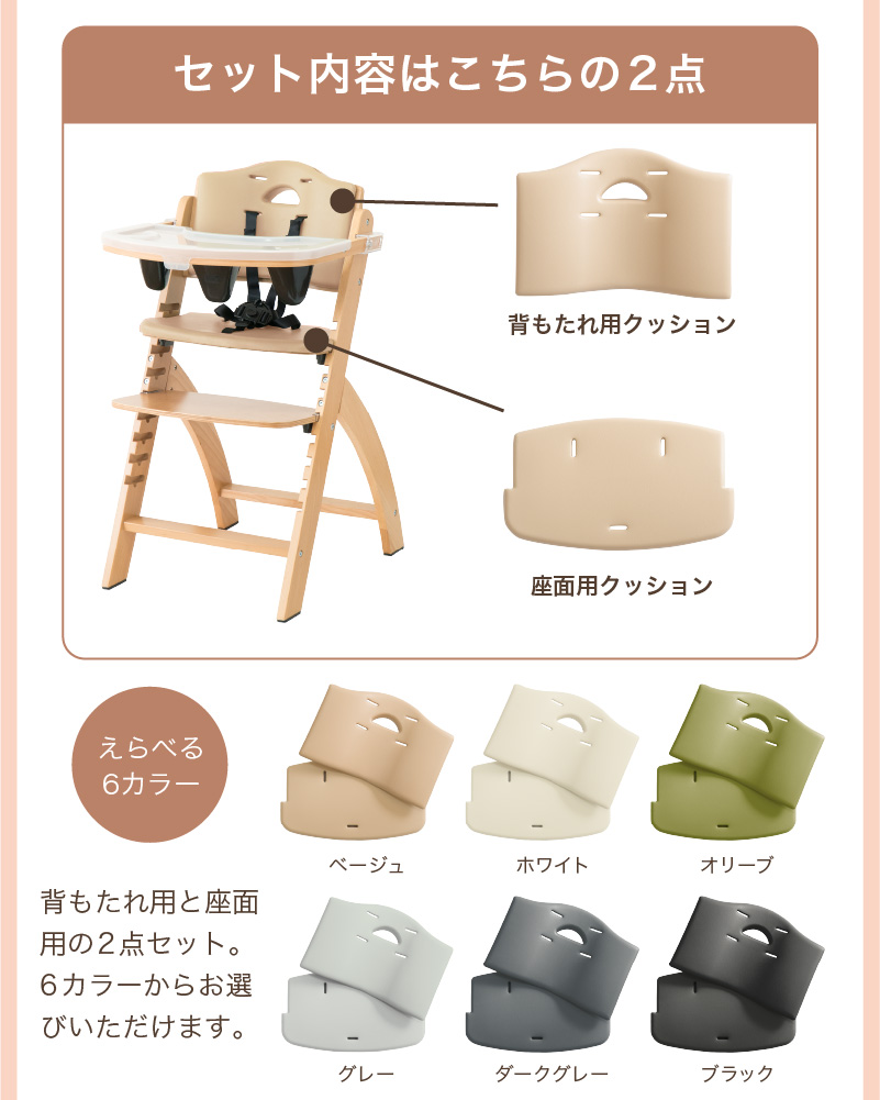 ビヨンドジュニア ハイチェアのパーツ部品「クッションセット」の販売ページです。